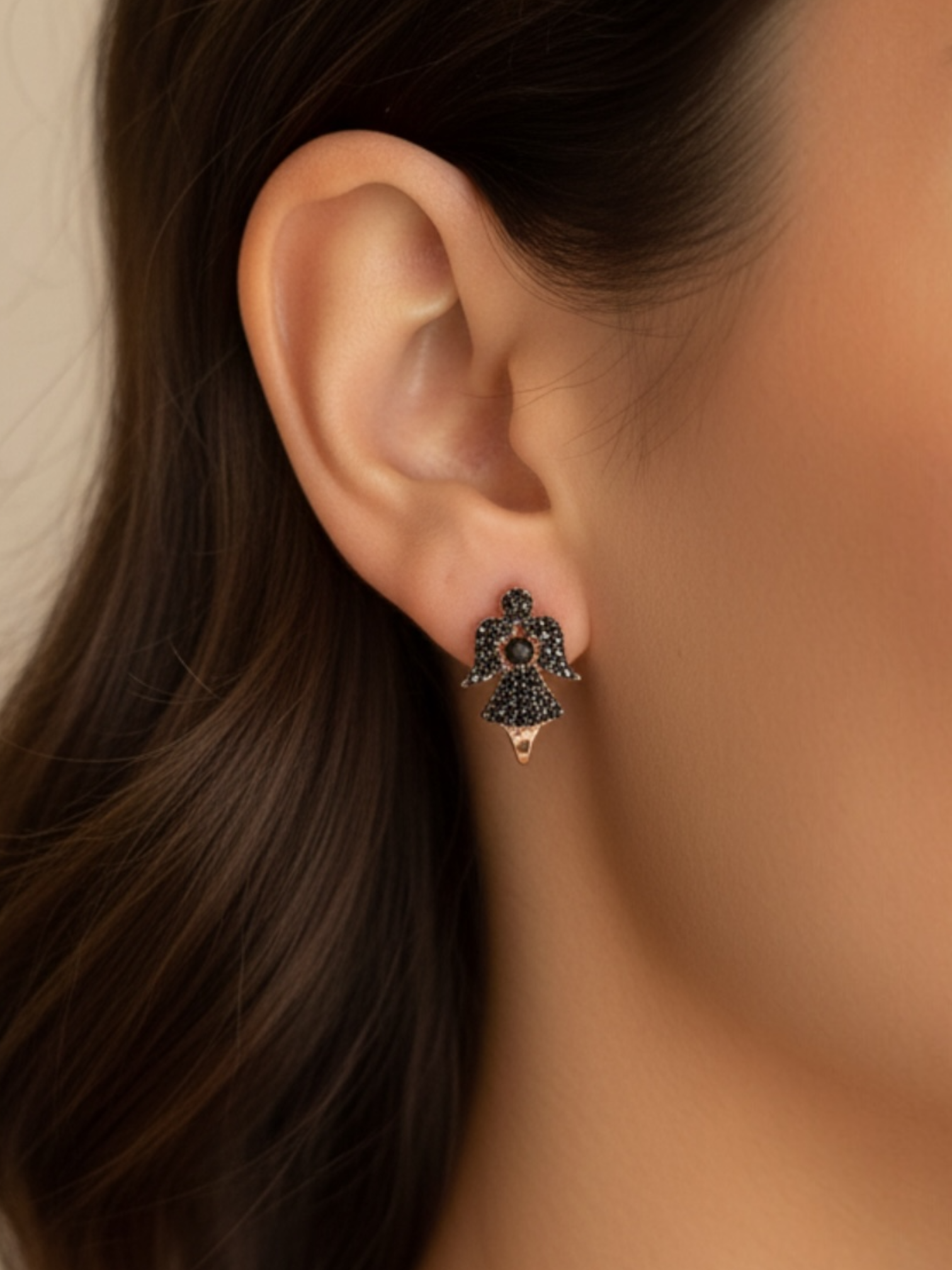 Ένα κόσμημα που ενώνει τη λάμψη με το μυστήριο. Τα ασημένια σκουλαρίκια Black Angel είναι κατασκευασμένα από ασήμι 925 με ροζ χρυσή επιμετάλλωση και μαύρα ζιργκόν που χαρίζουν μια σαγηνευτική, σικ αντίθεση.